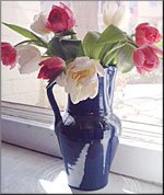 The sweetest, most cheerful pink and white tulips delivered FedEx this morning from B. I L-O-V-E
